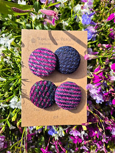 Handcrafted here on the Isle of Lewis these buttons are available in a range of sizes perfect for adding the finishing touch to any garment! From our very own Two Sisters Tweed, locally woven Harris Tweed and my own ceramic range I'm sure there will be the perfect button to match any colour! The tweed covered buttons have a metal loop back. If you don't see a size or colour you would like though, please get in touch as I am very happy to make to order
