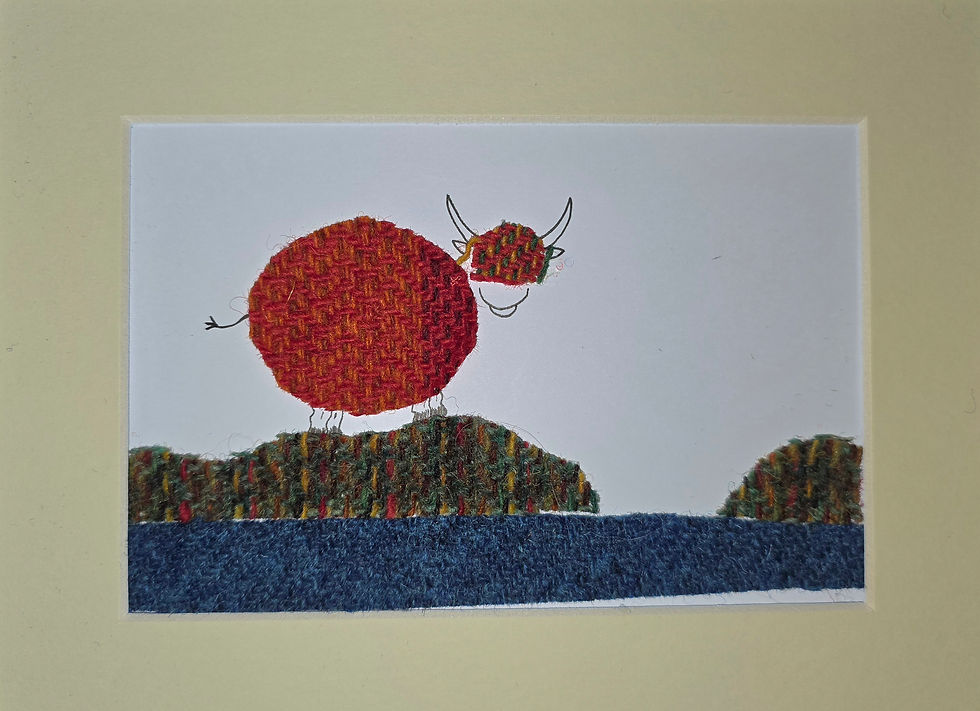 Crafted from scraps of handwoven tweed with pen line work to create fun quirky pictures inspired by the Outer Hebrides